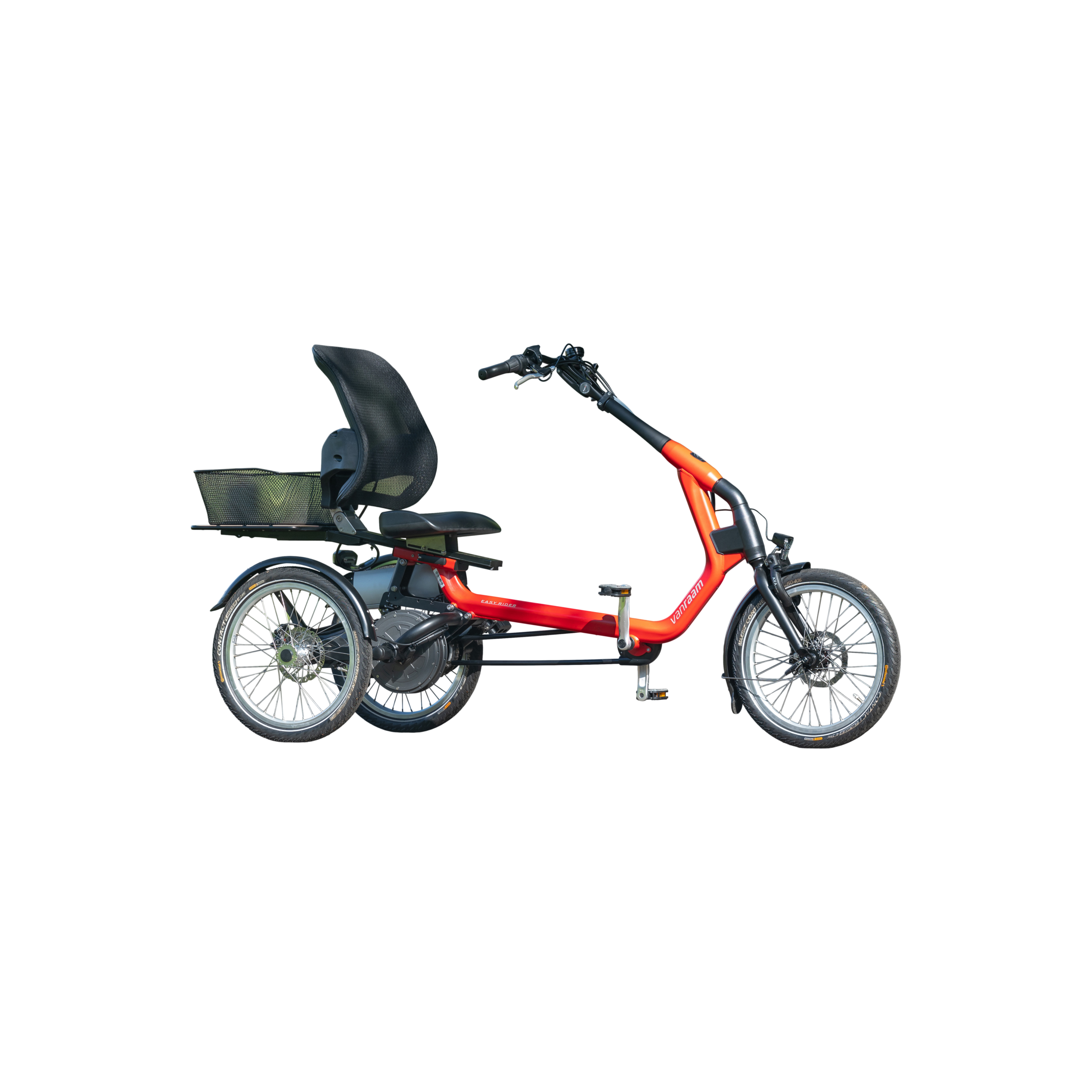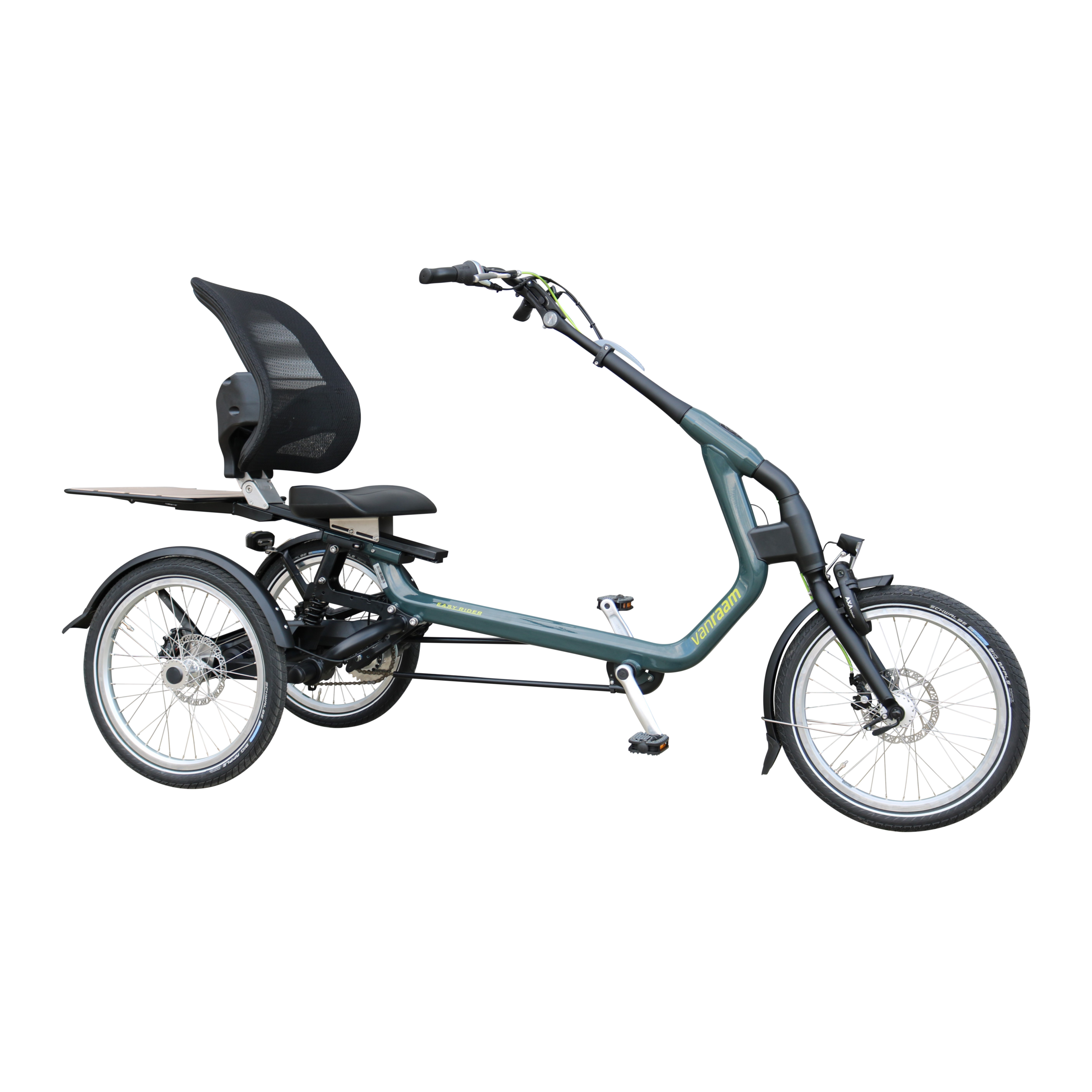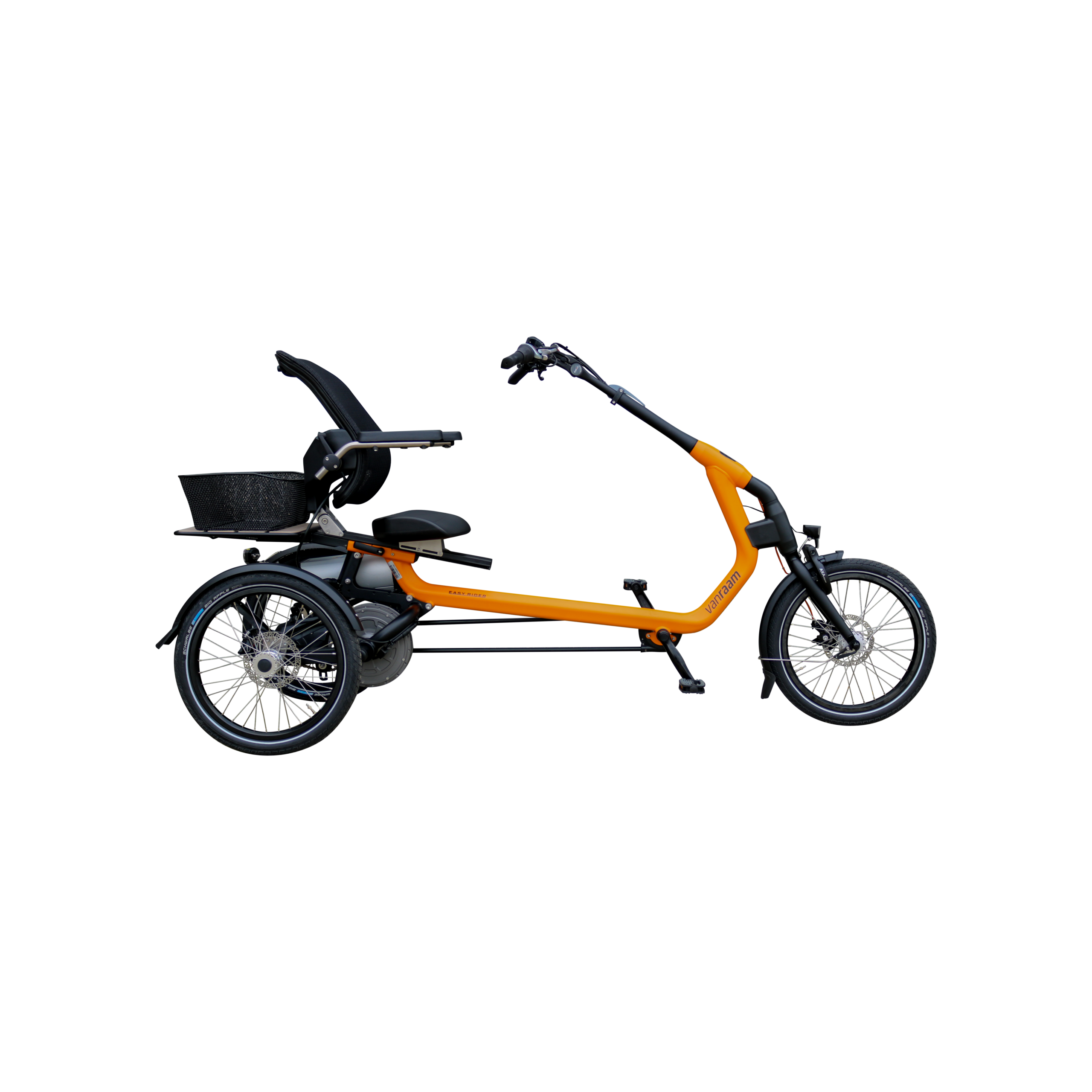 Because of the unique frame, there is a low entry, and the center of gravity lies lower. A big advantage of this third-generation tricycle is that the Easy Rider is very easy to ride on, even if you have never ridden a tricycle before. The Easy Rider has a comfortable seat with adjustable back support, lower back support, and raised edges on the side for better sitting comfort and lateral support. This provides a stable and secure feeling. The seat is easily adjustable with the quick-release lever.